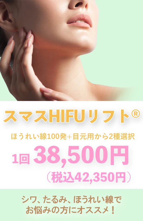 また、一般的なHIFUは1発照射するのに約3秒かかりますが、 赤坂ビューティークリニックの「スマスHIFUリフト」は1発あたり約1,5秒のため、 痛みを感じる時間も短くて済みます。